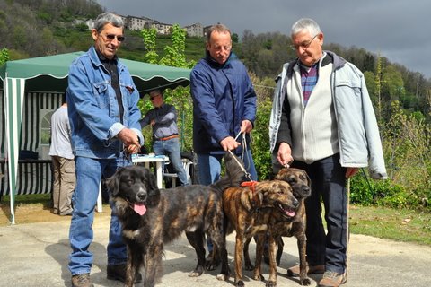 Rings spacieux sur une esplanade à l'écart de la Foire de la Castagniccia, tente de protection pour les juges, lingettes de désinfections, abreuvoirs pour les chiens, création d'un panneau d'information, permanence vétérinaire pour l'identification et au total 12 confirmations le matin dont six à titre de la descendance et l'après midi une présentation de sujets avec "explication de texte" devant un public nombreux et attentif.